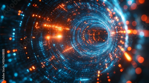 abstract, tunnel, digital, endless, light, bright, blue, orange, particle, glow, motion, futuristic, design, technology, space, visualisation, depth, illusion, connection, network, cyber, dynamic, energy, datum, wave, flow, vibrant, circle, line, perspective, movement, optical, graphic, atmosphere, aesthetic, composition, fantasy, surreal, concept, cinematic, effect, texture, pattern, journey, exploration, scene, artistic, creativity, environment