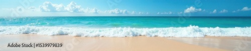 Endless horizon, turquoise waves crash on sandy shore, sun, waves