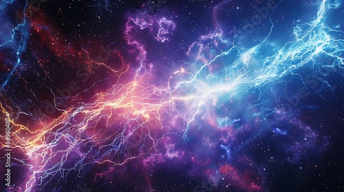 Energetic bursts of electric currents captured in a mesmerizing display of glowing lines against the backdrop of celestial marvels.