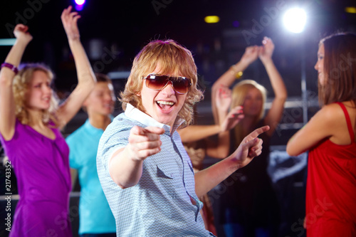 man, male, guy, girl, female, woman, people, person, teenage, dancing, dynamism, energy, dancer, happy, positive, expression, smart, nightclub, club, young, adult, party, cool, entertainment, cheerful, joyful, excitement, emotional, energetic, clubbing, fashion, disco, attractive, lifestyle, glad, stylish, blue, discotheque, photogenic, gesture, masculine, lad, dancefloor, sunglasses, portrait, foreground, background, trendy, face, wearing