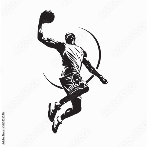 Energetic Slam Dunk Silhouette Basketball Logo Vector Minimal Sport Illustration