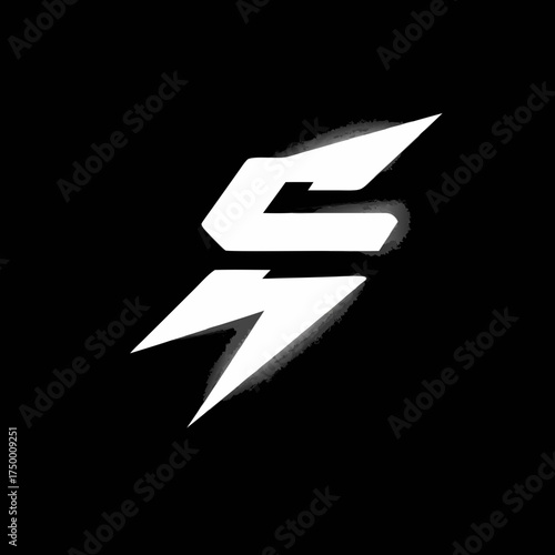 Energetic White Stylized Letter S or Abstract Dynamic Shape on Black Background, Modern Graphic Design Element for Technology and Gaming
