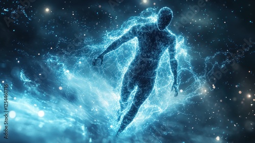 energy, being, space, cosmic, background, science fiction, film, float, astral, figure, universe, galaxy, nebula, star, light, blue, abstract, power, mystical, spiritual, fantasy, futuristic, technology, digital, art, illustration, design, concept, imagination, surreal, dream, motion, movement, aura, glow, shine, sparkle, celestial, aethereal, mysterious, enigmatic, vibrant, dynamic, high-coloured