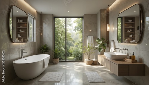 Energy efficient bathroom a serene depiction of a beautifully designed bathroom that enhances comfort while incorporating sustainable features to promote energy efficiency and conservation