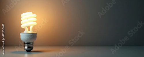 Energy-efficient light bulb representing illumination against dark background with copy space