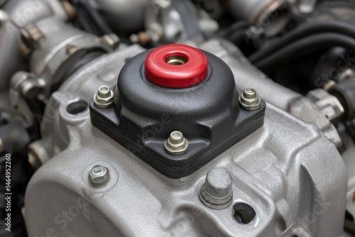 Engine Component: Close-up of Industrial Red-Accented Detail