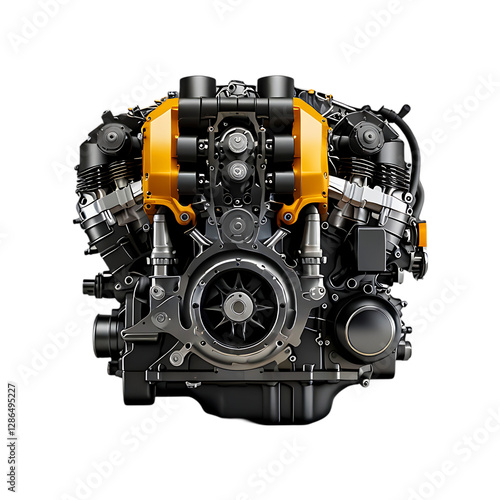 Engine of the engine Modern Car engines are isolated on a transparent background