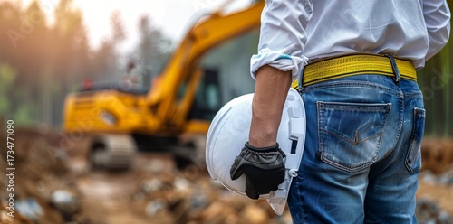 engineer, construction, helmet, site, machinery, work, project, holding, safety, hard, hat, shoveling, labor, men at work, tool, jean, glove, nature, landscape, building, equipment, operation, infrastructure, summer, dirt, activity, professional, career, teamwork