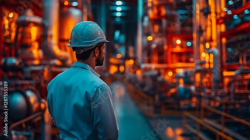 engineer, industrial, plant, observation, factory, machinery, safety, men at work, maintenance, equipment, manufacturing, technology, construction, process, production, power, industry, control, inspection, operation, modern, automation, metal, pipe, light, background, detail, sharpened, large, workplace