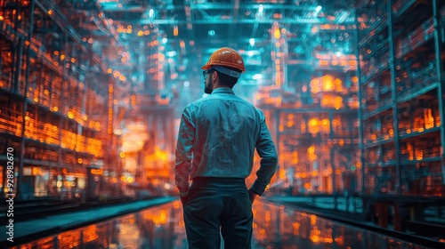 engineer, warehouse, light, shelf, industrial, tech, futuristic, illuminated, innovation, progress, technical, storage, organisation, ambition, industry, development, men at work, space, engineering, equipment, high technology, interior, vision, advanced, modern, facility, machinery, technology, professional, structure, infrastructure, planning, digital, logistic, background, smart, detailed, system