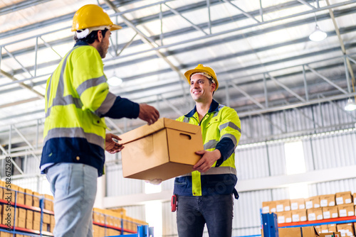 Engineer team cargo shipping transportation ship loading move inventory cardboard boxes in factory distributions warehouse at logistics center.logistic industry and business import export