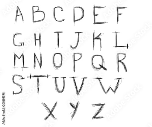 English alphabet sequentially made with pencil on white background