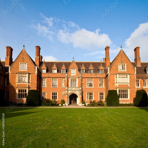 building, collegiate, exterior, english, architecture, historical, house, redbrick, facades, lawn, garden, campus, britain, old, historic, college, victorian, structure, ivy