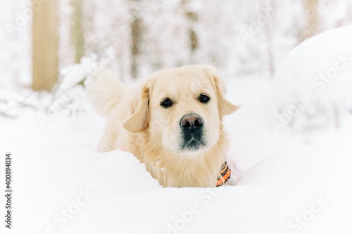 English Cream Golden Retriever is having the time of his life after snowfall in Pittsburgh, Western Pennsylvania. Keep calm and have fun.