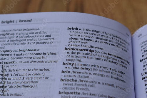 brink, education, print, lettering, texture, frame, detail, define, spelling, condemned, meaning, learn, school, highlight, explanation, macro, paper, translation, reference, definition, word, single, closeup, concept, dictionary, book, english, learning, explain, text, transcription, white, surface, black, page, language, letter, reading, cognition, research, spell
