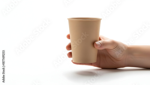 Enhance your brand with this captivating shot of a hand holding a disposable cup, perfect for conveying sustainability and convenience in your marketing campaigns.