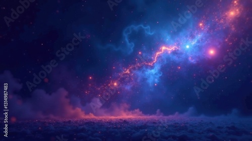Enigmatic Celestial Event Glowing Nebulae and Sparkling Dust Across a Dreamlike Landscape