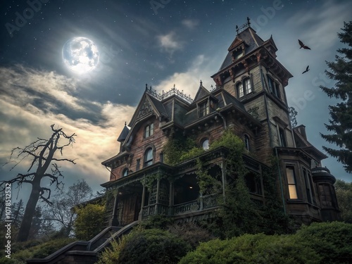 haunted, luxury home, victorian, moon, skittish, double exposure, eerie, night, architecture, landscape, ghostly, shadow, mystical, old, atmospheric, dark, historic, nature, full moon, scene, photo, horror, enchanted, ancient, twilight, moonlight, creepy, fog, aethereal, silhouette, fantasy, timeless, abandoned, mystery, supernatural, spectral, gloom, dramatic, enchanting, whimsical, light, dusk, surreal, magical, folklore, legend