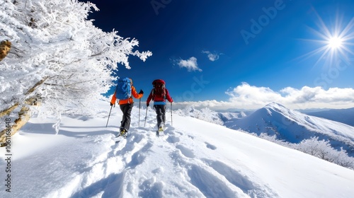 hike, mountain, snow, winter, adventure, explore, nature, outdoors, travel, scenery, landscape, sunlight, fresh air, cold, trek, exercise, fitness, sky, cloud, tree, view, bliss, calmness, beauty, journey, path, leisure, friends, solitude, wilderness, fresh, summit, peak, photo, life events, happiness, exploration, movement, travel destination, frosty, snowfall, winter landscape, scenic view