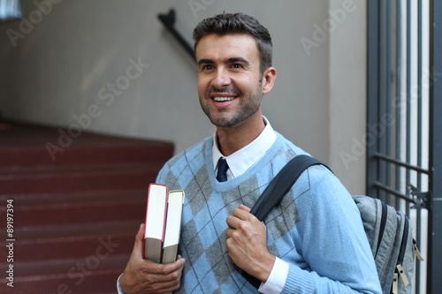 student, campus, university, male, young, adult, school, success, studying, out, casual attire, people, smiling, confidence, expressing, textbook, outdoors, education, candid, carefree, college, camera, exterior, attractive, happiness, intelligence, positivity, caucasian, building, learning, smile, lifestyle, 20s, sharpened, high, standing, beauty, toothy, looking, enjoyment, cheerful, book, communication, relaxation, elegant, classic, formal, man, photogenic