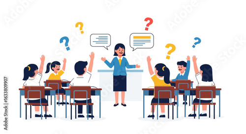 classroom, student, raising, hand, learning, teacher, question, education, school, study, teaching, asking, cognition, lesson, vector, illustration, class, student, training, pupil, pupil, learn, desk, chair, answer, smart, intelligent, academic, group, college, university, blackboard, seminar, grade, test, exam, assignment, cv, instructing, educating