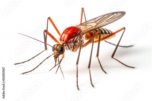 entire mosquito body. A comprehensive model of a macro camera. macro lens with 100mm focal length. Light of day. isolated against a white backdrop. scientific images