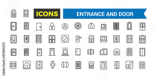 Entrance and Door icons set. Outline icons pack. Editable vector line icon set and illustration for web and UI application.