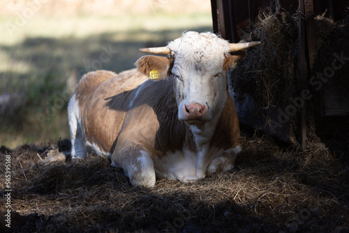 cow, animal, farm, cow, grass, farming, field, cattle, nature, mammal, meadow, horn, fodder, laid back, lie, fur, hay, straw