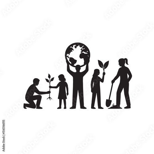 environmental conservation, people, silhouette, children, vector, woman, icon, boy, man, group