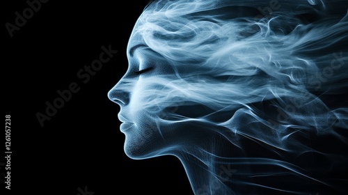woman, face, profile, aethereal, dreamlike, abstract, mind, spirit, thought, concept, beauty, female, portrait, smoke, fantasy, illustration, digital, art, artistic, design, creative, imagination, mystery, surreal, visionary, calm, serenity, peaceful, meditation, zen, consciousness, subconscious, aura, energy, flow, inspiration, inner, peace, soul, tranquil, deep, psychological, identity, self