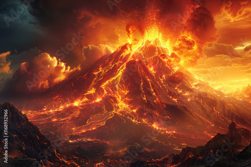 eruption, generative, ai, volcano, lava, nature, fire, red, disaster, volcanic, magma, geology, glowing, explosion, mountain, force, steam, sea, geothermal, hell, spectacle, horizontal, glow, fumarole, hot, geologic, darkness, exploding, danger, erupting, expedition, adventure, active, horizon, flow, night, ecuador, crater, stromboli, dark, star, earthquake, sunset, dust, energy, natural, light, cloud