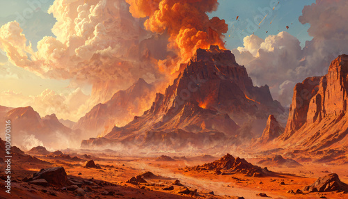 volcano, landscape, eruption, cloud, swaying, nature, dramatic, fire, heaven, mountain