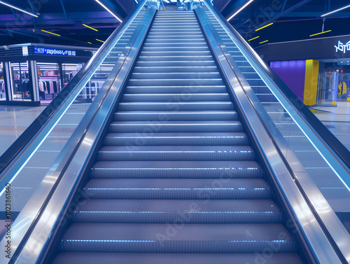 Escalator Leading to an Upper Floor in a Luxurious Mall Setting