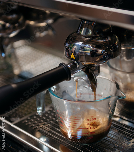 Espresso brewing into Pyrex measuring