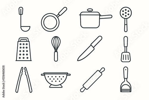 kitchen, utensil, grater, whipped, knife, ladle, colander, tongs, spatula, saucepan, cookware, cooking, tool, contraption, equipment, baking, culinary, home, chef, meal, preparation, utensil, appliance, rolling, pan, pot, stirring, cutlery, frying, chopping, mixer, vector, icon