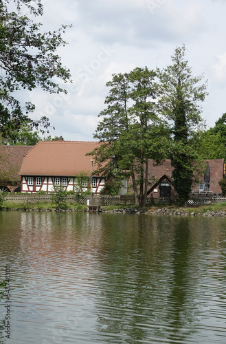 german, half-timbering, frame house, house, hesse, see, duck pond, fish pond