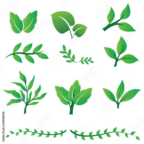 et of green leaf vector design element, leaf, nature, plant, tree, vector, green, spring, icon, set, leaves, illustration, design, environment, branch, ecology, natural, eco, floral, summer, logo
