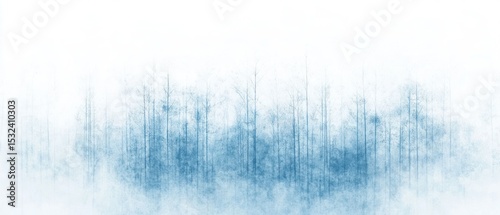 Ethereal Blue Forest: A Misty Winter Landscape