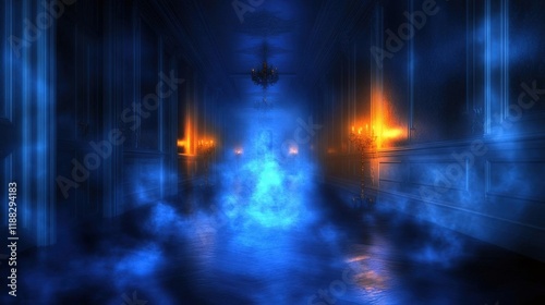 blue, glowing, fog, light, dark, tunnel, hallway, corridor, mystery, fantasy, science fiction, digital, art, abstract, energy, power, path, journey, atmosphere, smoke, ambient, neon, futuristic, surreal, dreamlike, space, cosmos, enchanting, magical, effect, foggy