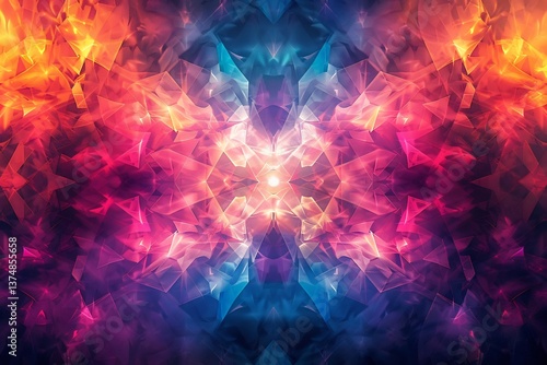 Ethereal Digital Kaleidoscope merging luminous tessellations vibrant angular mosaics cascading gradients that radiate through futuristic space to create a surreal tableau of dynamic creative energy