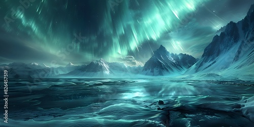 Ethereal Frozen Seascape with Mesmerizing Aurora Borealis Display in the Starry Arctic Night Sky