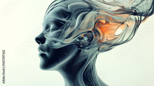 abstract, woman, profile, smoke, aethereal, spiritual, mind, thought, consciousness, artistic, digital artwork, dreamy, fluid, conceptual, introspection, art, flower, wave, flow, hair, motion, colours, light, shape, black, pattern, beauty, curve, fire, design, face, swirl, ink, smooth, form, fashion, cigarette, burn