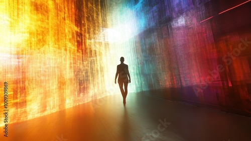 human, silhouette, abstract, light, colours, surreal, digital, art, futuristic, passage, tunnel, pathway, illumination, vibrant, aglow, aethereal, mystical, dimensional, ambient, atmosphere, conceptual, avant-garde, experimental, artistic, creative, imagination, vision, discovery, exploration, journey, transformation, transcendence, introspection, meditation, wonder, awe, beauty, mystery