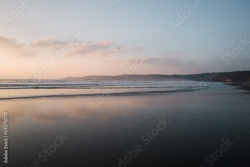 Ethereal pastel late afternoon light on a sandy beach in the UK