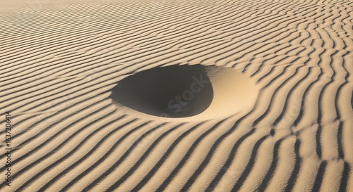 Ethereal sandscape revealing a dark abyss within rippling dunes creating mesmerizing patterns
