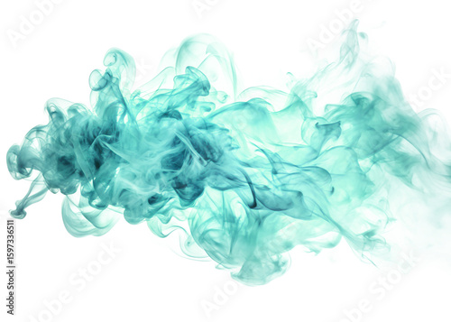 Ethereal wisps of teal smoke swirl gracefully across a transparent background, creating a fluid design