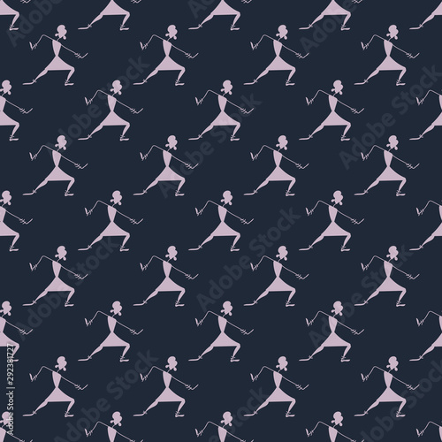 Ethnic Indian traditional dance seamless pattern on a dark blue background, vector