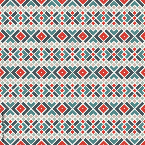 Ethnic, tribal seamless surface pattern. Embroidery ornament. Folk background. Repeated geometric symbols motif