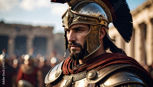 Etruscan Warrior in Ornate Bronze Armor with Detailed Headgear