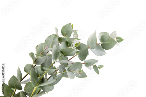 Eucalyptus foliage, branch with green leaves, floral decoration isolated on white